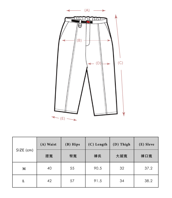 ◼ Because of factors such as fabric elasticity or washing treatment etc., each item may have a measurement error of 2-3 cm during manual measurement which is normal.