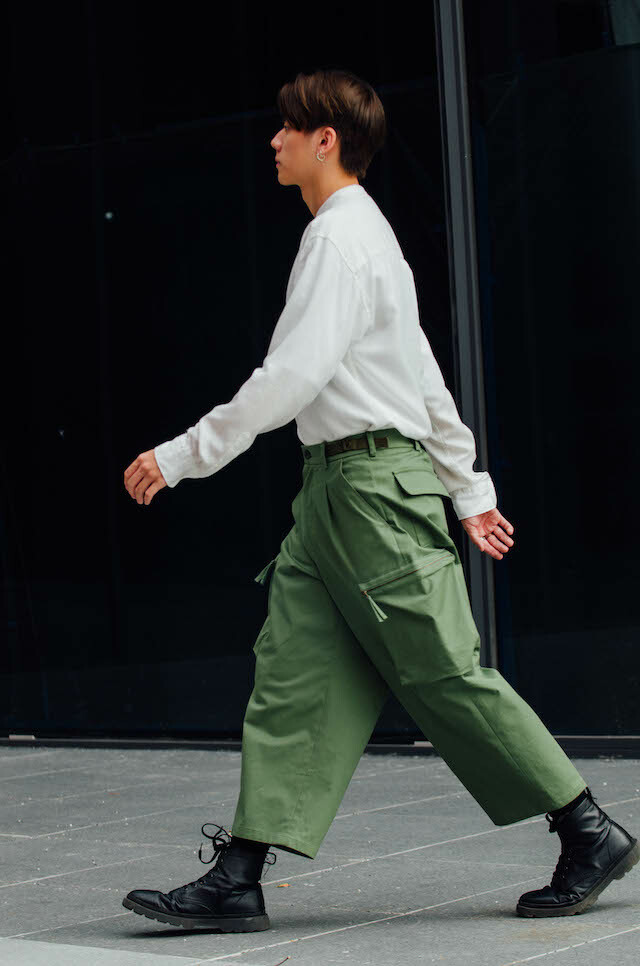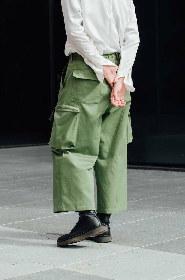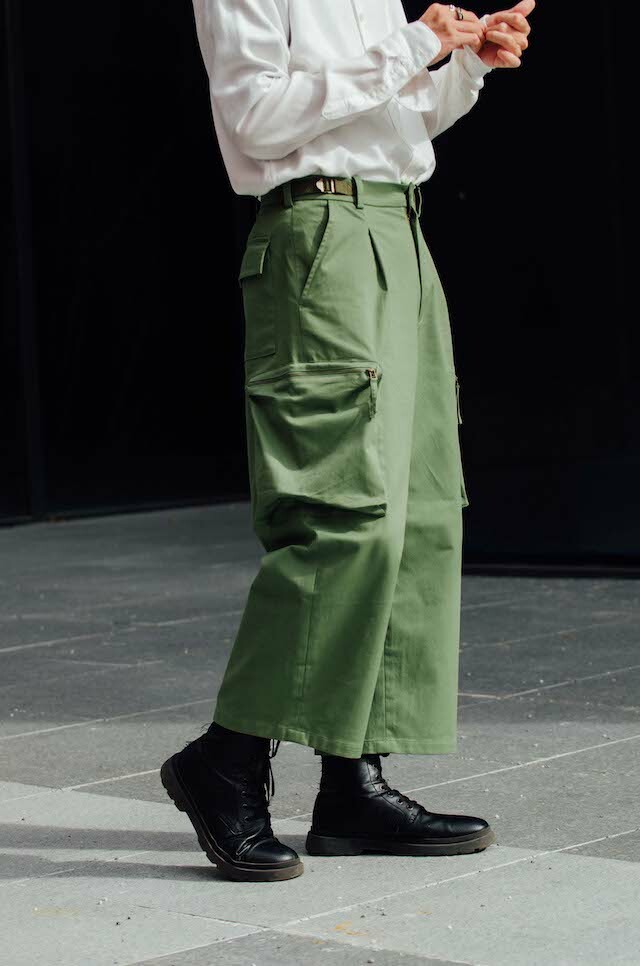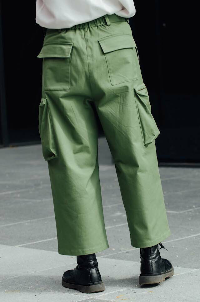 以60年代美軍的M65經典野戰褲為設計概念,寬鬆版型,硬挺、高彈、適合好動或最強大腿的都會戰士褲款。