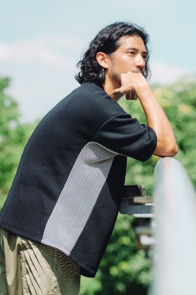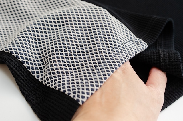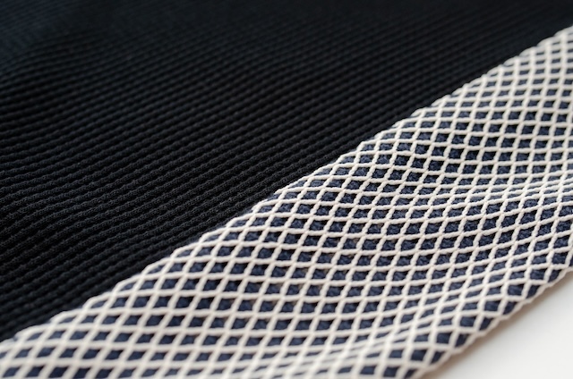 側腹邊的”漁網織り”透過色彩與組織的視覺交錯編織,
