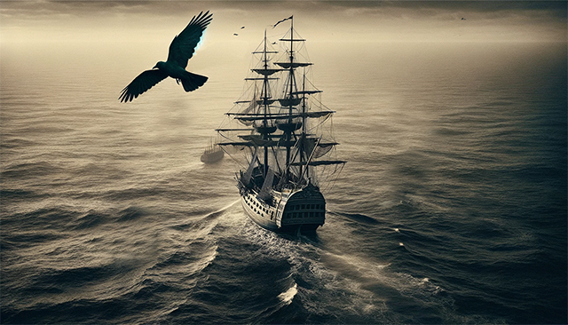 船員會放飛烏鴉,然後循著烏鴉飛行方向尋找陸地。