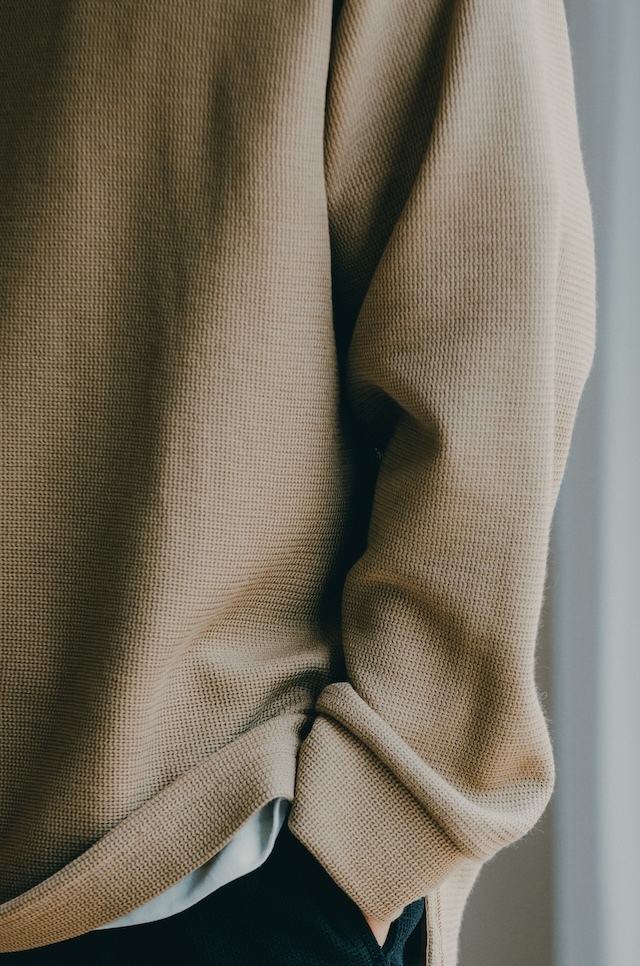 日本製的針織面料,有著獨特的海浪形狀組織,質輕鬆暖,不笨重,不縮不皺,好養護的針織上衣。